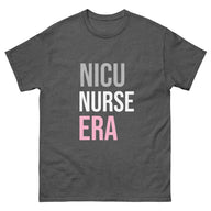 Embrace the NICU Nurse Era with NICUity's T-shirt – the perfect shirt for you or your NICU nurse bestie. This classic men's tee, crafted from 100% cotton, offers more than just comfort – it elevates your style with a structured look. The open-end yarn and tubular fabric ensure a silhouette that sits nicely, maintains sharp lines around the edges, and seamlessly complements layered streetwear outfits. Join the trendiness of the moment with NICUity's NICU Nurse Era T-shirt.